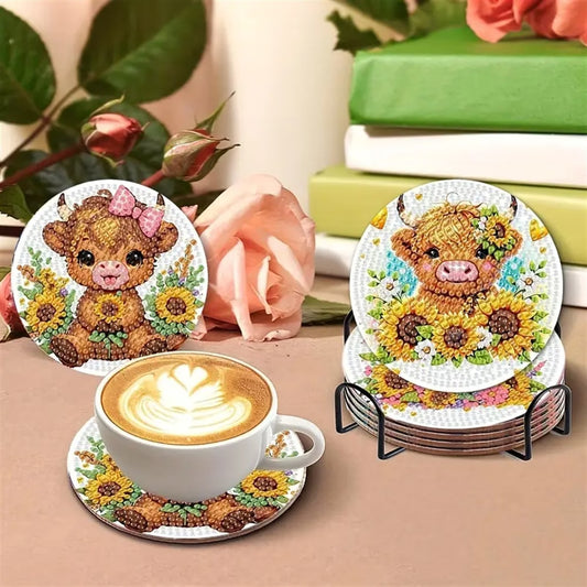 Highland Cow & Sunflower Diamond Art Coaster Set (8-Piece)